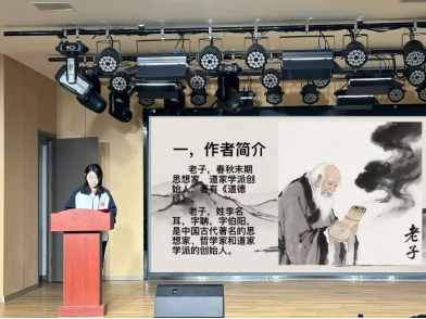 活动伊始,学生代表们带来了多元主题的精彩分享。从《道德经》“道法自然”的深邃哲学思辨,探寻古人的智慧结晶;到《红岩》中革命先烈坚如磐石的信仰力量,感受那段波澜壮阔的历史;从史铁生《我与地坛》里对生命的深刻感悟,体会命运与思考的交织;再到《宽容》一书中展现的人类文明演进历程,拓宽视野与格局。他们借助精心自制的PPT,以精练且生动的表达,带领在场师生穿越时空,与经典著作展开深度对话。