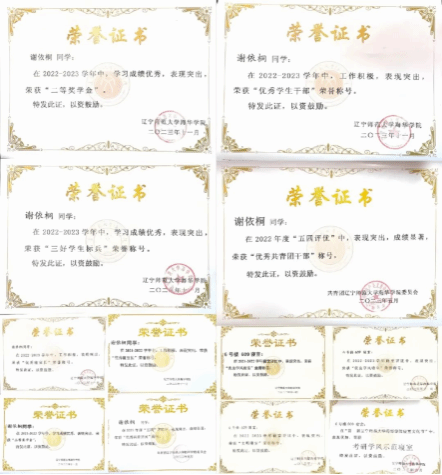 入学以来,谢依桐同学夯实基础,学习成绩优异。连续三学年专业成绩和综合测评名列前茅,此外,她参加外研社国才杯全国英语阅读大赛并获校赛一等奖,通过英语四六级考试。课外之余,她参加了挑战杯课外学术科技竞赛获校赛三等奖、辽宁省大学生创新创业训练计划,该项目成功获批国家级立项并顺利结项。她参与各类科研项目,从项目的策划到实施,每一个环节都倾注了团队的共同心血,将理论和实践相结合,在学术的田地里辛勤耕耘,收获了知识与成果。